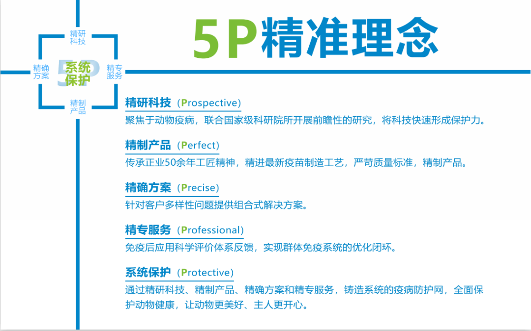 正業(yè)生物將繼續(xù)弘揚(yáng)“精研科技、精制產(chǎn)品、精確方案、精專服務(wù)、系統(tǒng)保護(hù)”5P精準(zhǔn)免疫理念,積極推動公司業(yè)務(wù)的健康、快速、可持續(xù)發(fā)展,為動物健康、人類幸福做最忠誠的服務(wù)者。