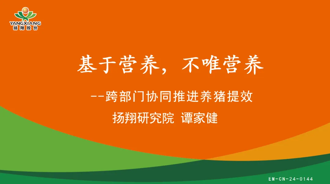 隨后,揚翔集團研究院院長譚家健博士系統介紹了揚翔體系內基于營養的跨部門協同,實現養豬生產提效,基于營養,不唯營養。揚翔研究院下屬多個研究部門在有效的組織與協同下為生產效益提升貢獻科技力量,其分享的揚翔管理體系與6部門協作會議得到與會嘉賓高度贊賞。